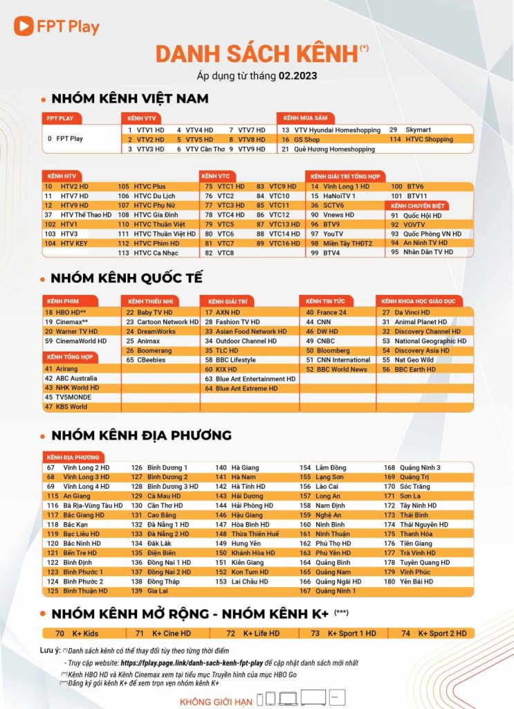 2.2 DANH SÁCH KÊNH TRUYỀN HÌNH FPT MỚI NHẤT.