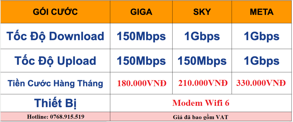 - Miễn phí 100% lắp đặt và Modem 2 băng tần 5G ( Trị giá 1.650.000 VNĐ )